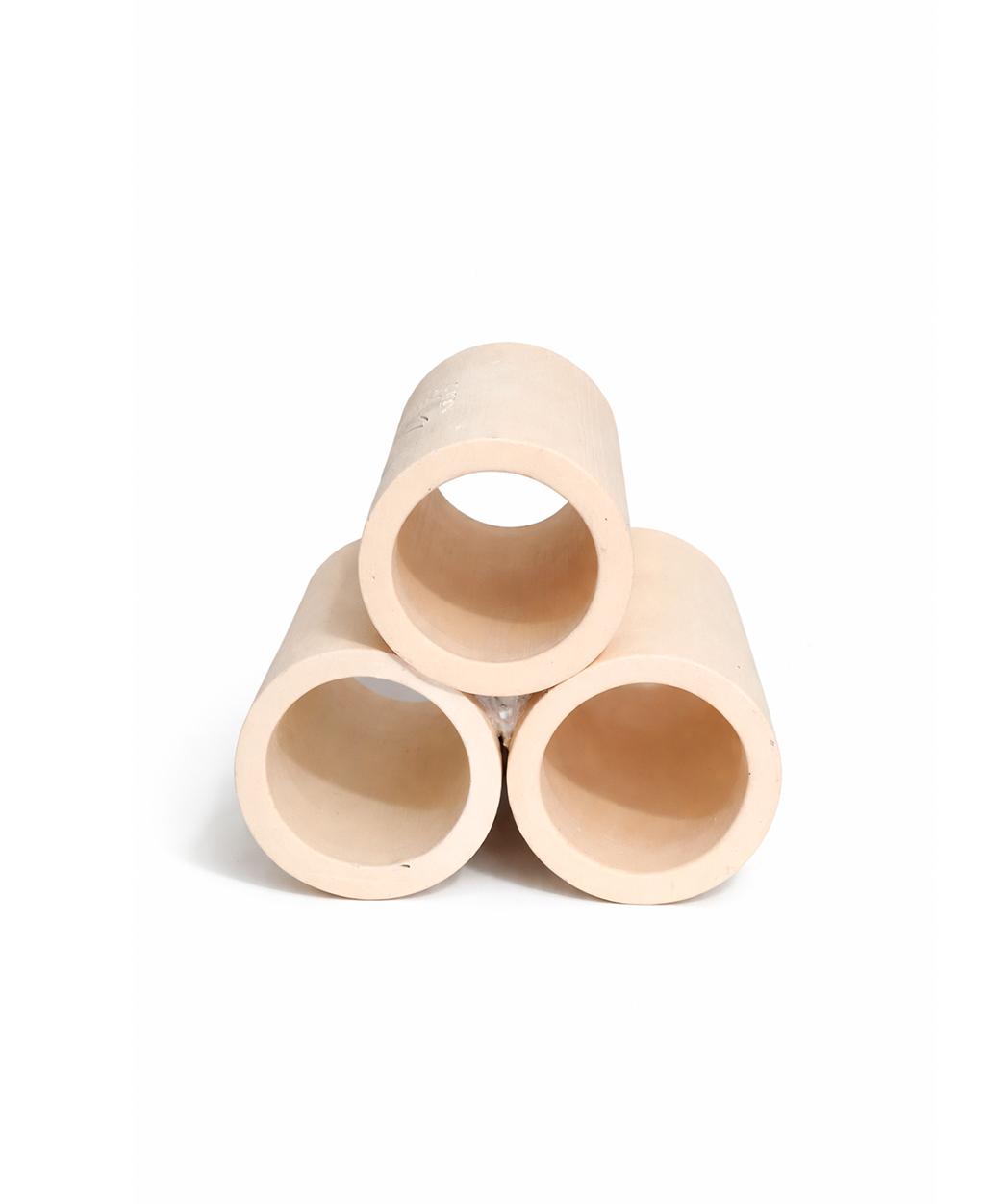 Os tubos são ocos, com bordas bem definidas e espessura uniforme, empilhados de forma estável em composição triangular, criando um design minimalista e contemporâneo. O material cerâmico garante resistência, durabilidade e um toque sofisticado, sendo ideal tanto para uso decorativo quanto funcional, dependendo da proposta.